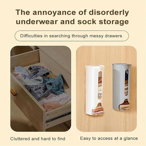 Our wall-mounted organizer transforms cluttered drawers into a neat display. With easy access to your socks and underwear, mornings become stress-free and organized. Never search for matching pairs again!